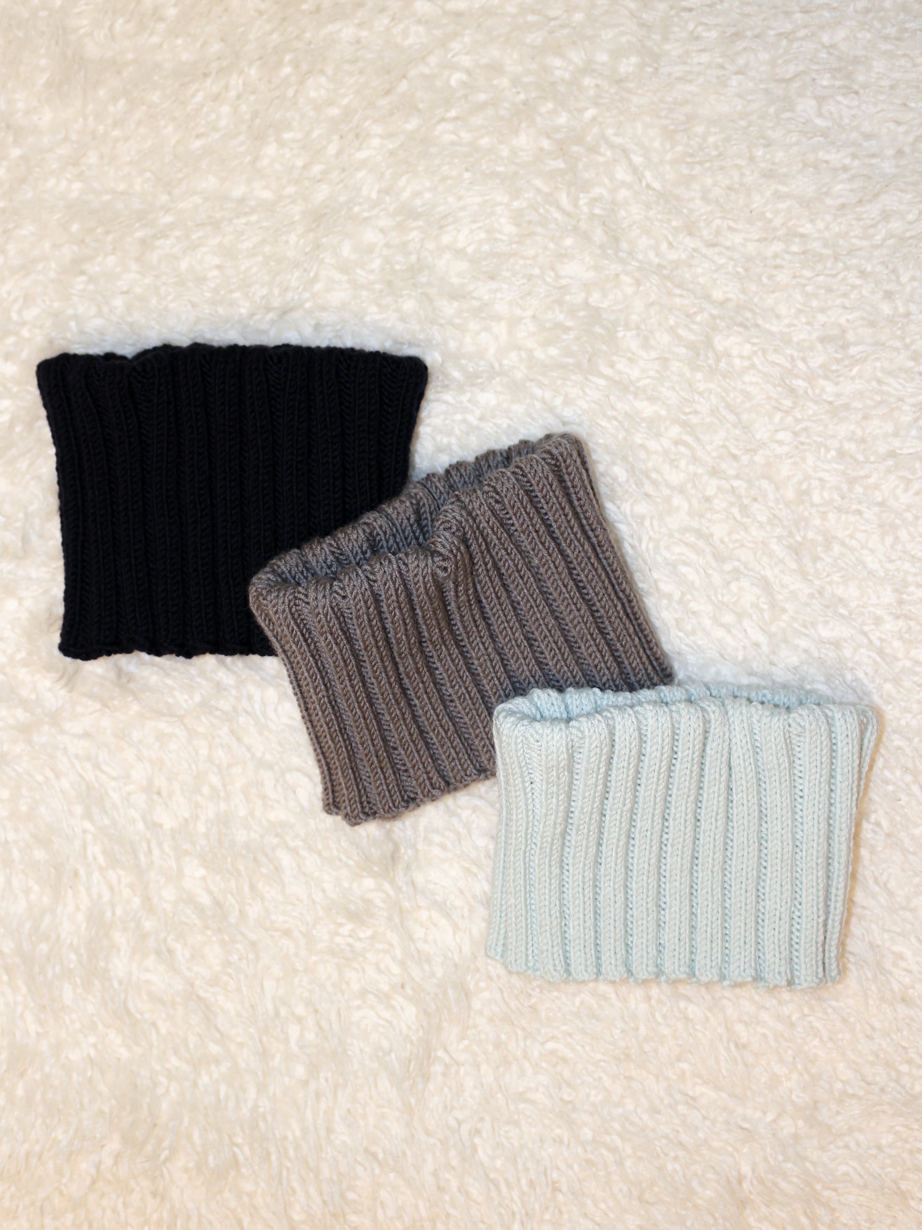 細めの毛糸を使用したゴム編みのうねりがあたたかさを閉じ込め、