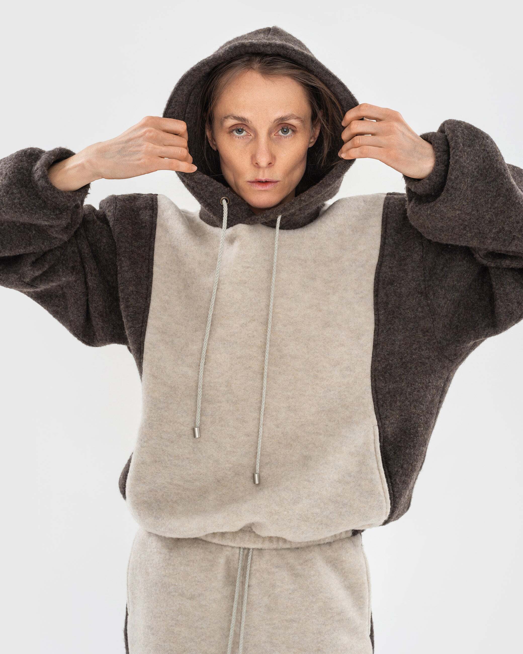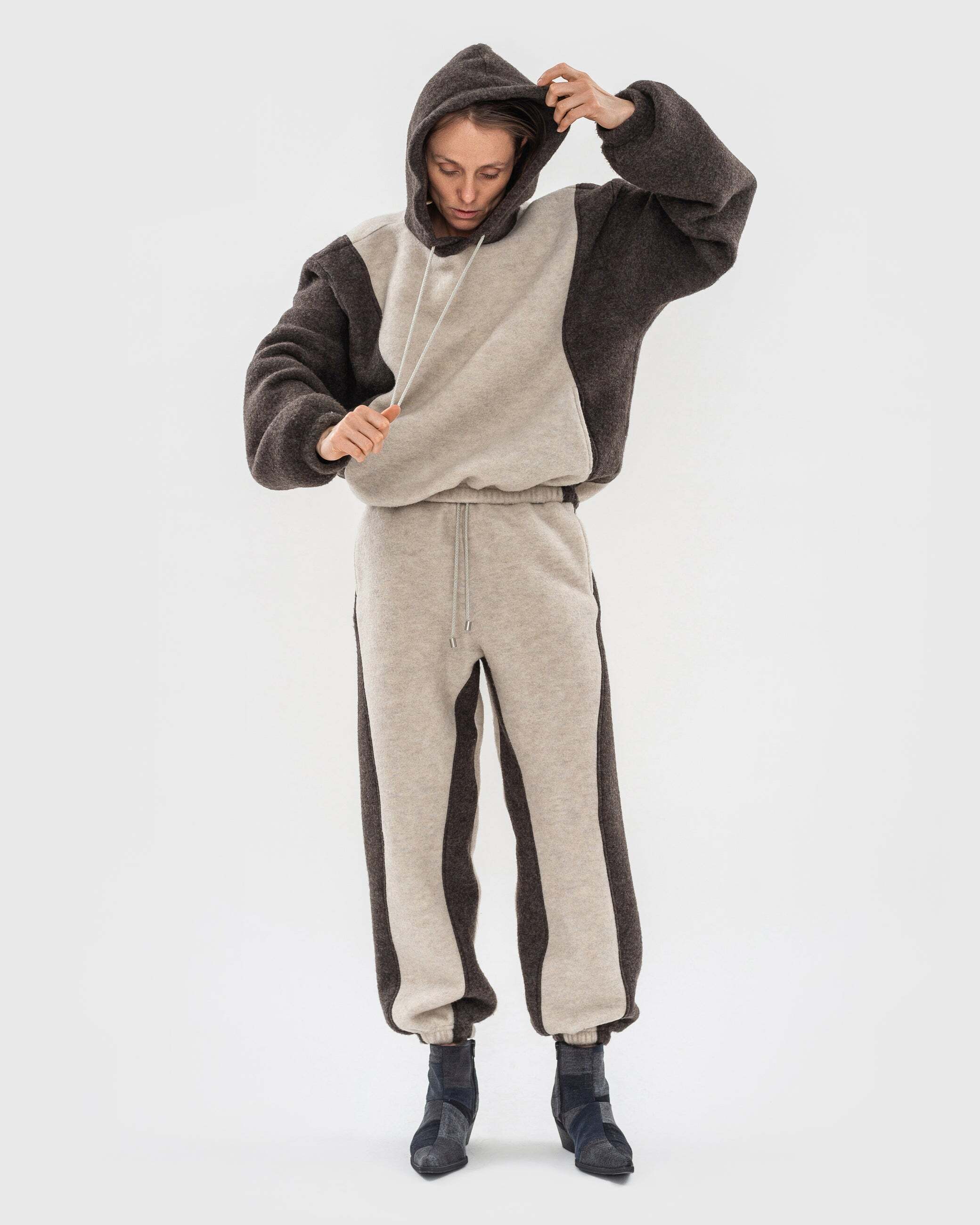 ks2368fw25-PNT2WGY warm grey/ mocca Foofy Dual Pants Main fabric: 84% wool, 14% polyamide