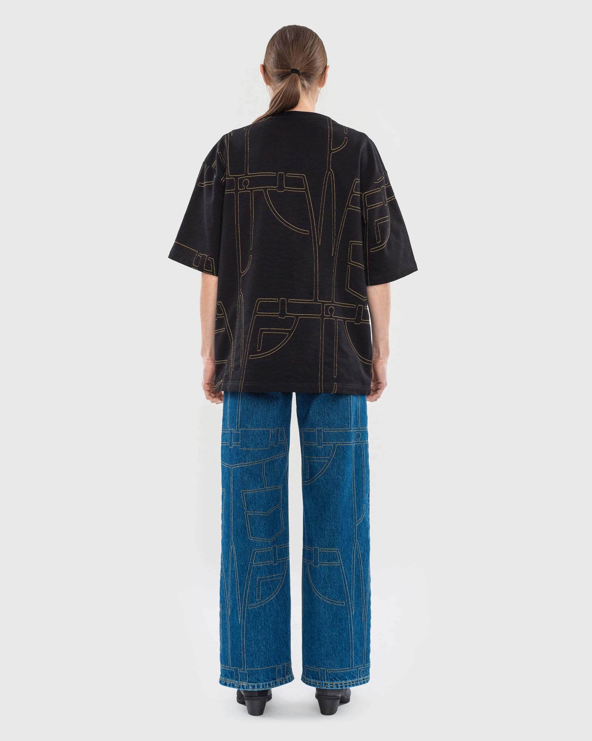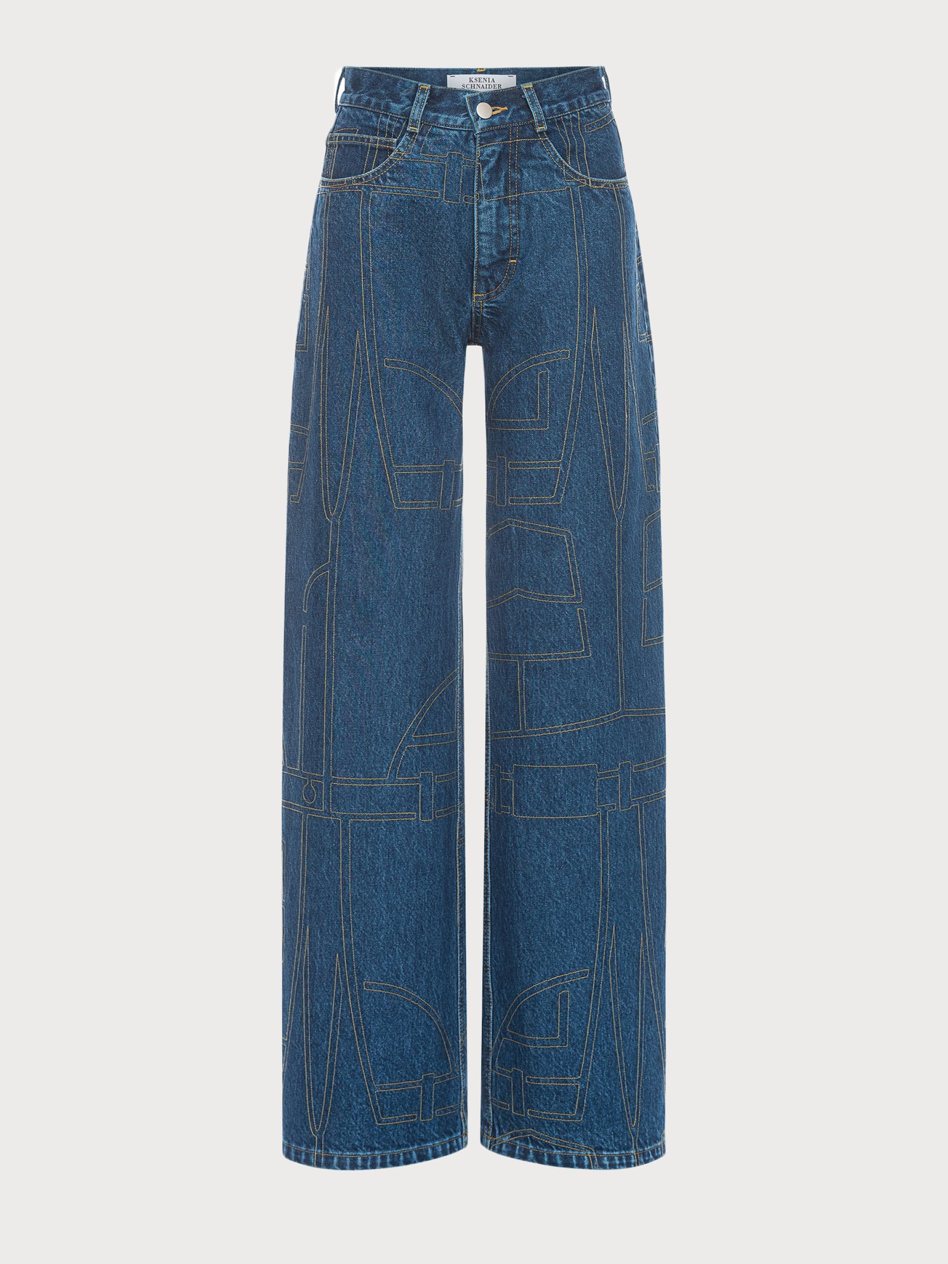デニム柄ミシンステッチ ワイドデニムパンツ