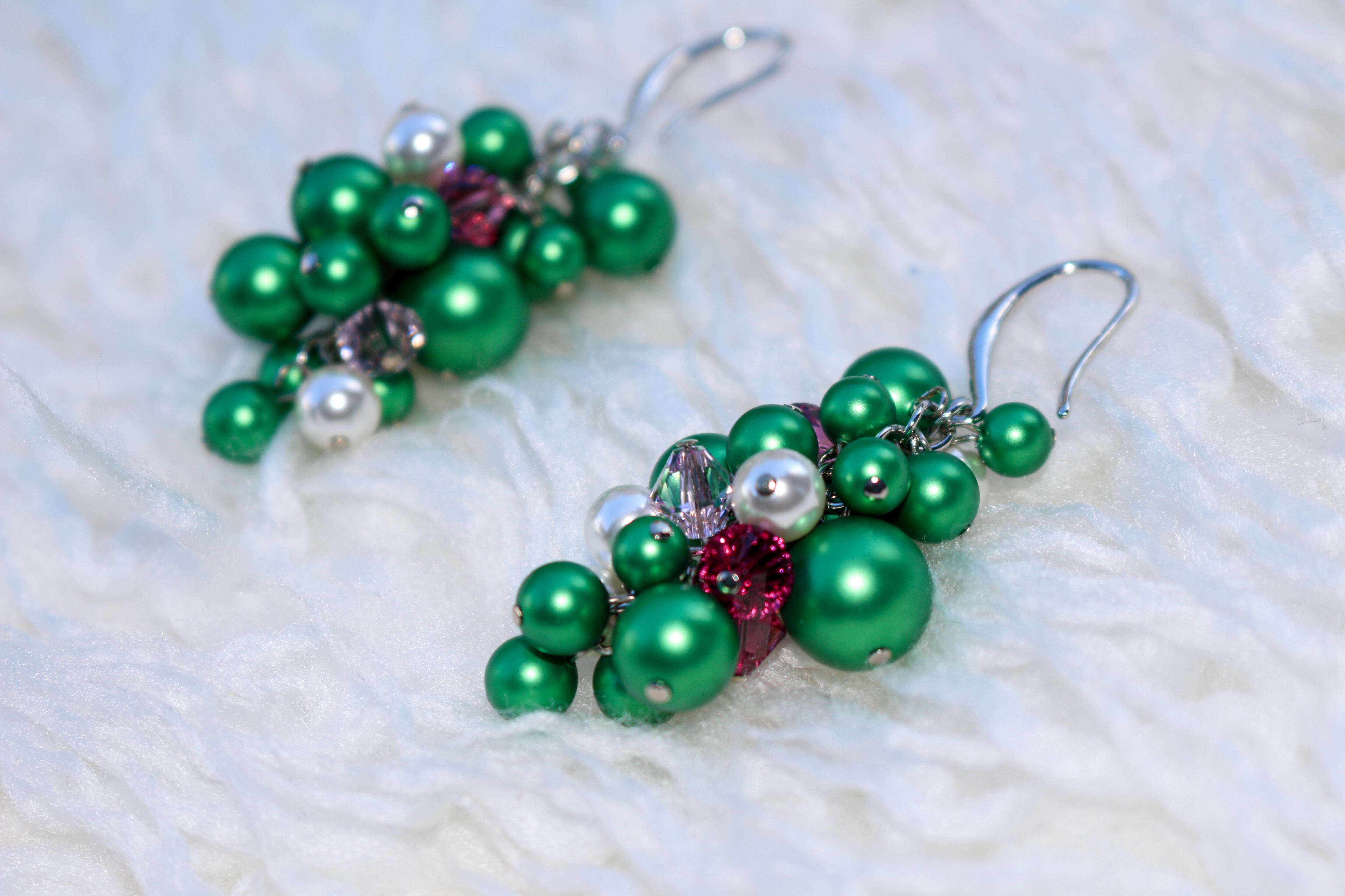 スワロフスキーパールのエデングリーンとスワロフスキーのピンクの組み合わせでサボテンにお花の咲いたイメージで製作しました。