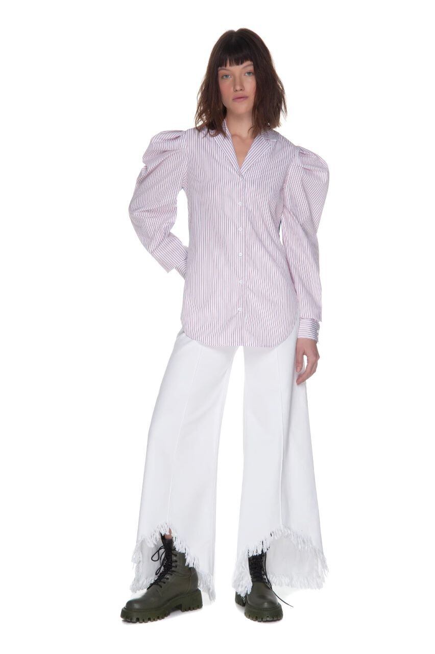 ks1795ss23 blue/pink stripe Queen Blouse with Denim back